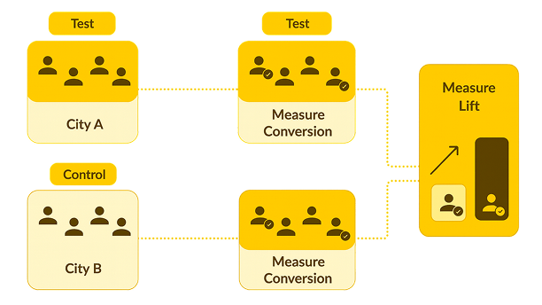 By comparing the performance of the test markets to the control markets during the campaign period, we can determine the marketing intervention’s causal effect, or lift.